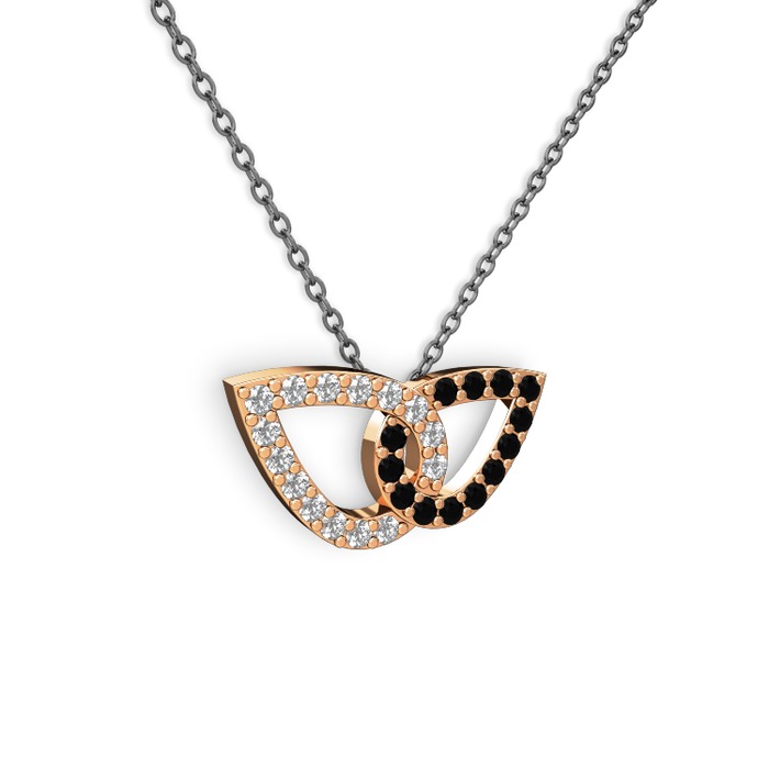 Siyah zirkon ve pırlanta 925 ayar rose altın kaplama gümüş kolye (0.154 karat, 40 cm gümüş rolo zincir)