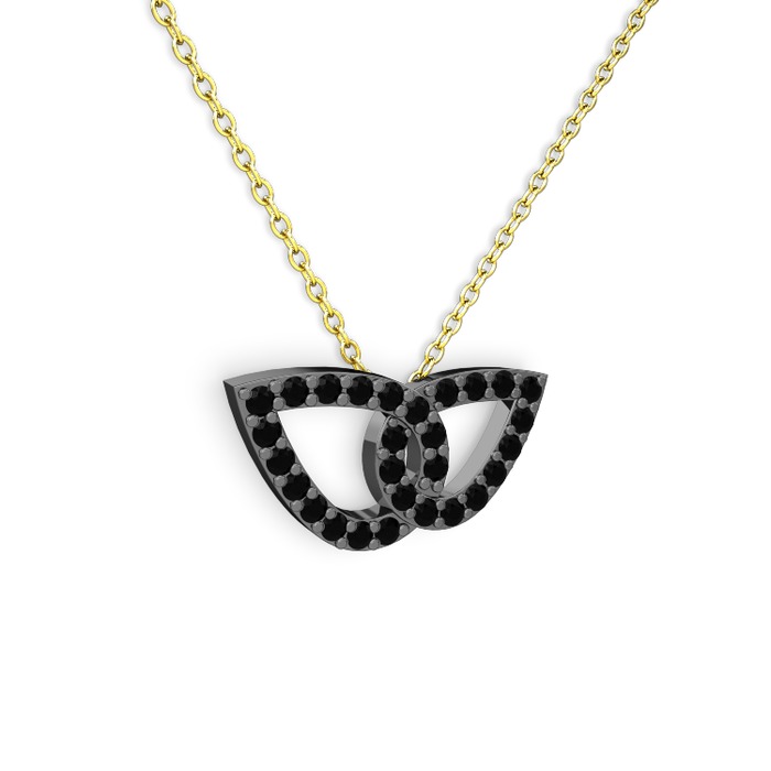 Siyah zirkon 925 ayar siyah rodyum kaplama gümüş kolye (40 cm altın rolo zincir)