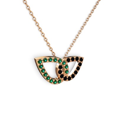 Siyah zirkon ve yeşil kuvars 18 ayar rose altın kolye (40 cm rose altın rolo zincir)