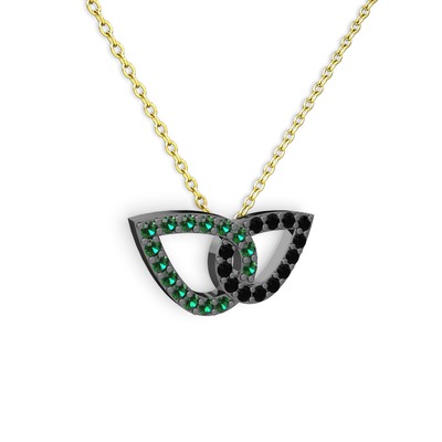 Siyah zirkon ve yeşil kuvars 925 ayar siyah rodyum kaplama gümüş kolye (40 cm altın rolo zincir)