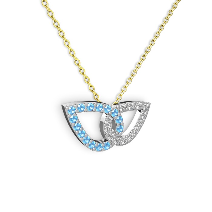 Swarovski ve akuamarin 925 ayar gümüş kolye (40 cm altın rolo zincir)