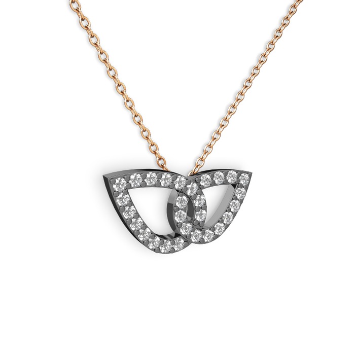 Swarovski ve beyaz zirkon 925 ayar siyah rodyum kaplama gümüş kolye (40 cm rose altın rolo zincir)