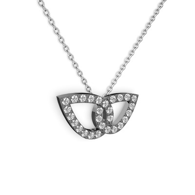Swarovski ve pırlanta 925 ayar siyah rodyum kaplama gümüş kolye (0.154 karat, 40 cm beyaz altın rolo zincir)