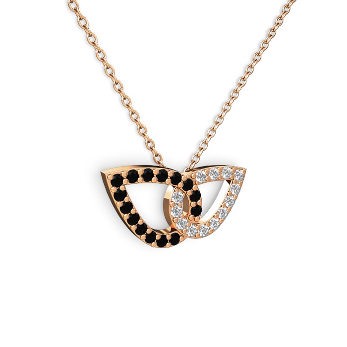 Swarovski ve siyah zirkon 14 ayar rose altın kolye (40 cm rose altın rolo zincir)