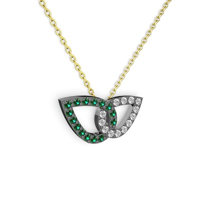 Swarovski ve yeşil kuvars 925 ayar siyah rodyum kaplama gümüş kolye (40 cm altın rolo zincir)