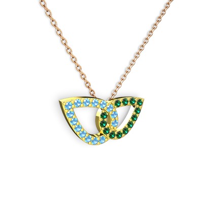 Yeşil kuvars ve akuamarin 8 ayar altın kolye (40 cm rose altın rolo zincir)