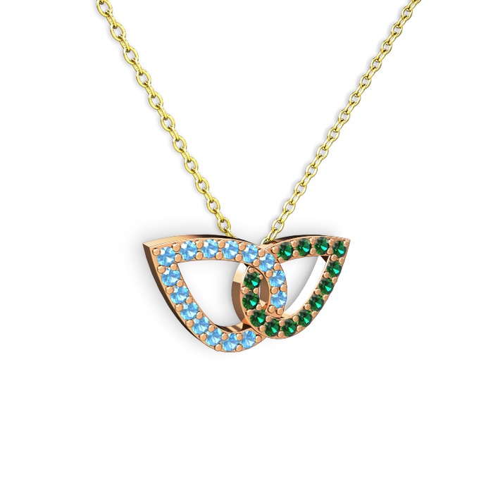 Yeşil kuvars ve akuamarin 8 ayar rose altın kolye (40 cm altın rolo zincir)
