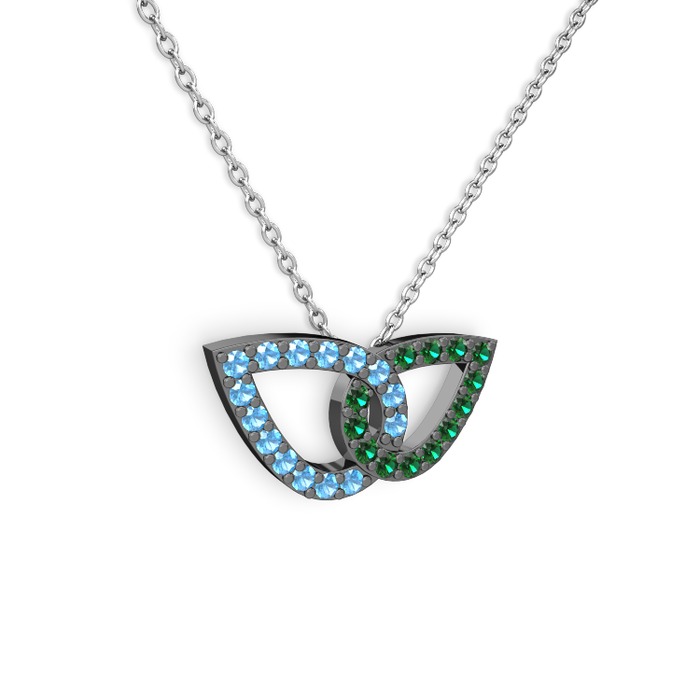 Yeşil kuvars ve akuamarin 925 ayar siyah rodyum kaplama gümüş kolye (40 cm beyaz altın rolo zincir)