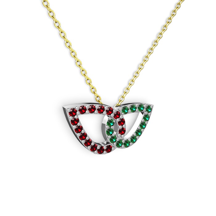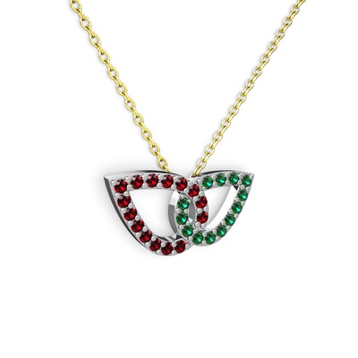 Yeşil kuvars ve garnet 8 ayar beyaz altın kolye (40 cm altın rolo zincir)
