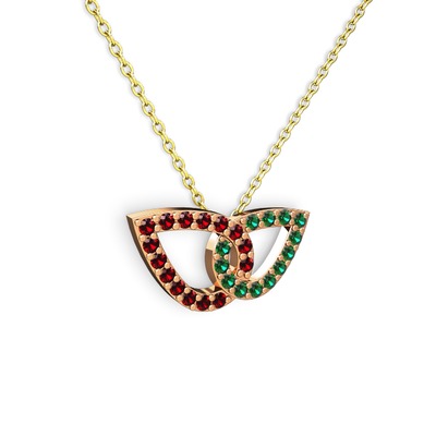 Yeşil kuvars ve garnet 8 ayar rose altın kolye (40 cm altın rolo zincir)