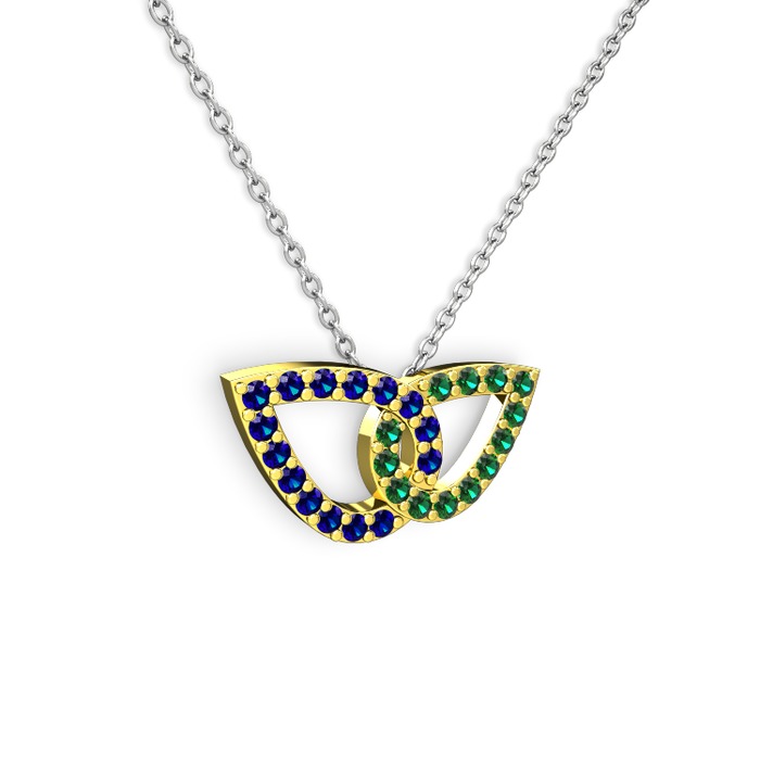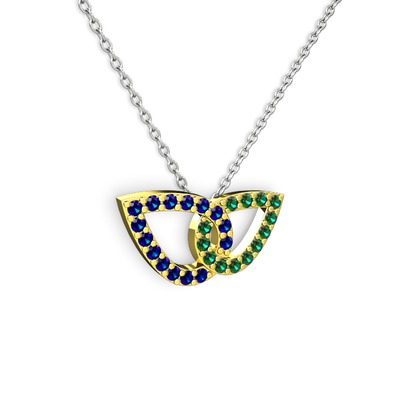 Yeşil kuvars ve lab safir 925 ayar altın kaplama gümüş kolye (40 cm beyaz altın rolo zincir)