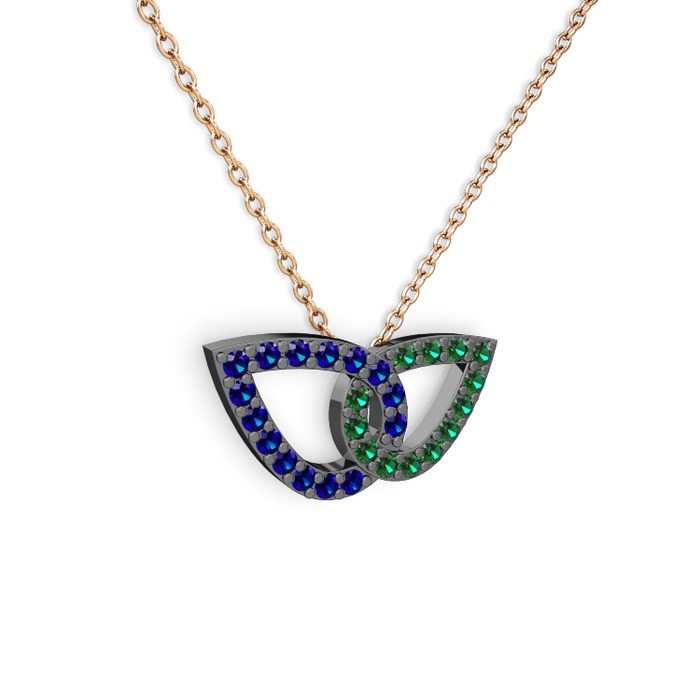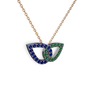 Yeşil kuvars ve lab safir 925 ayar siyah rodyum kaplama gümüş kolye (40 cm rose altın rolo zincir)