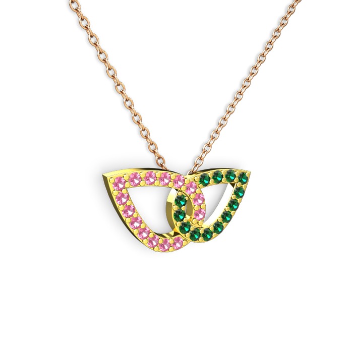 Yeşil kuvars ve pembe kuvars 18 ayar altın kolye (40 cm rose altın rolo zincir)