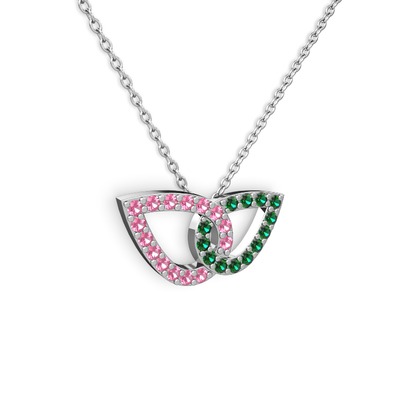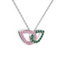 Yeşil kuvars ve pembe kuvars 8 ayar beyaz altın kolye (40 cm gümüş rolo zincir)