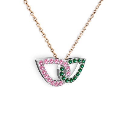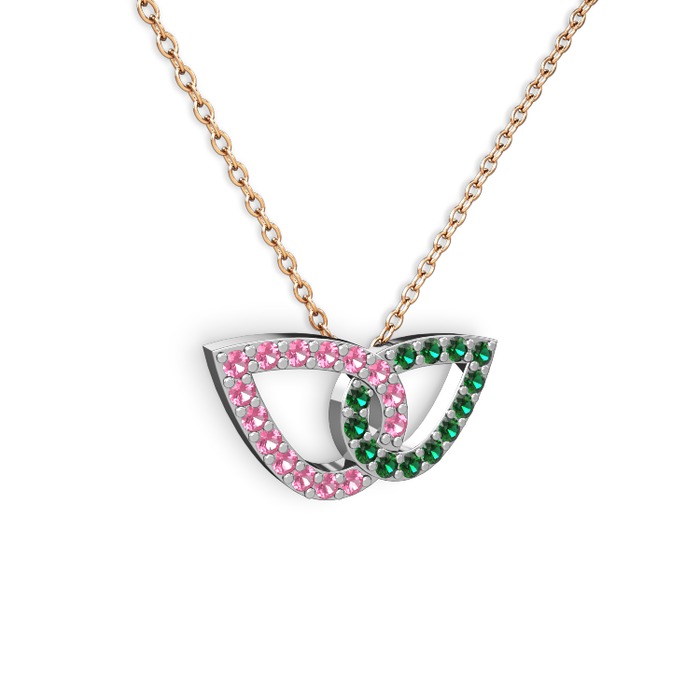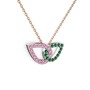 Yeşil kuvars ve pembe kuvars 8 ayar beyaz altın kolye (40 cm rose altın rolo zincir)