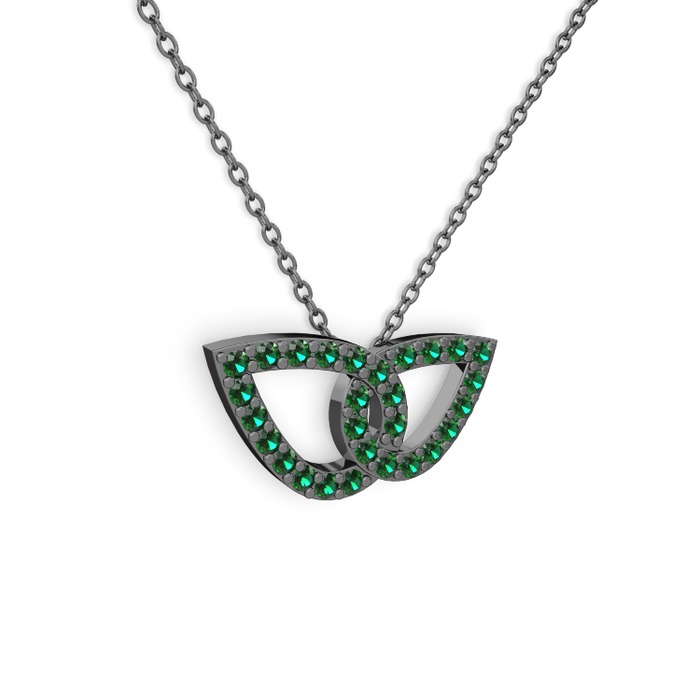 Yeşil kuvars 925 ayar siyah rodyum kaplama gümüş kolye (40 cm gümüş rolo zincir)