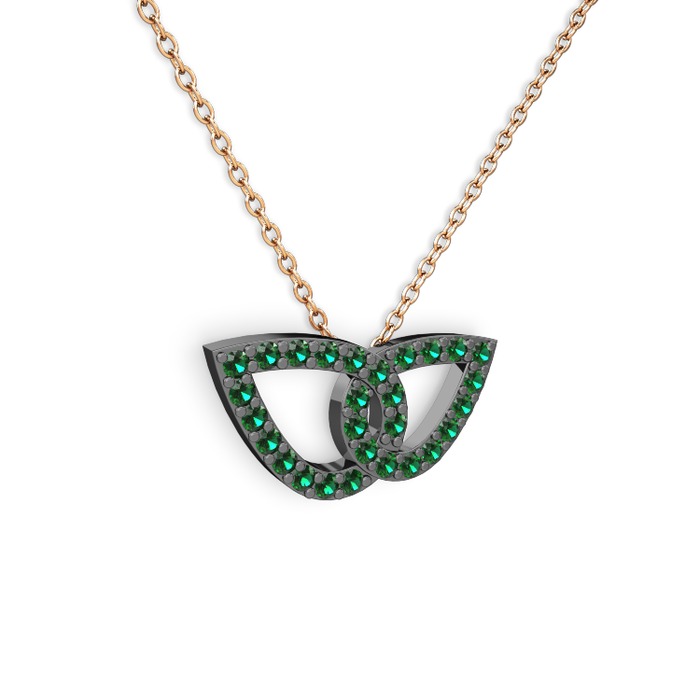 Yeşil kuvars 925 ayar siyah rodyum kaplama gümüş kolye (40 cm gümüş rolo zincir)