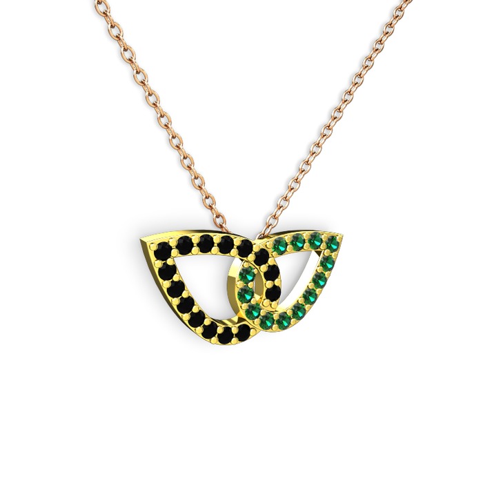 Yeşil kuvars ve siyah zirkon 8 ayar altın kolye (40 cm rose altın rolo zincir)