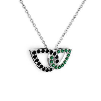 Yeşil kuvars ve siyah zirkon 8 ayar beyaz altın kolye (40 cm gümüş rolo zincir)