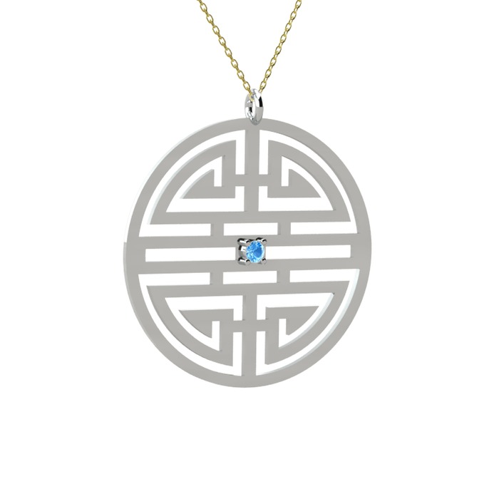 Akuamarin 18 ayar beyaz altın kolye (40 cm altın rolo zincir)