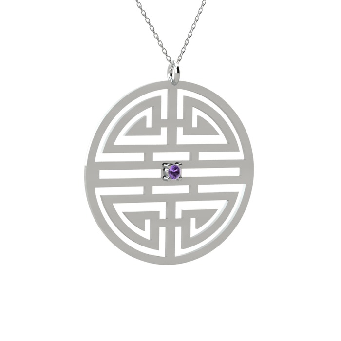 Ametist 14 ayar beyaz altın kolye (40 cm beyaz altın rolo zincir)
