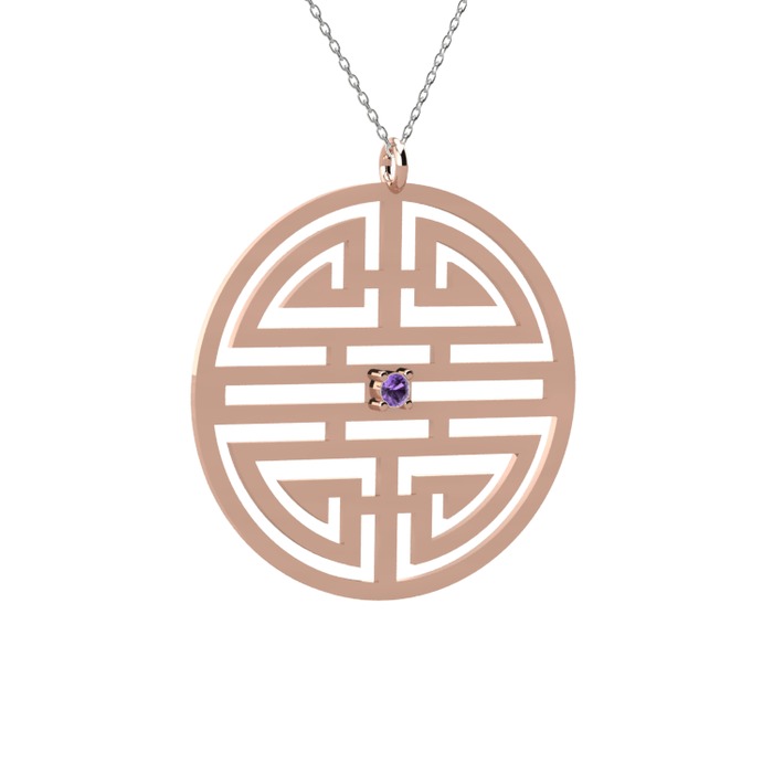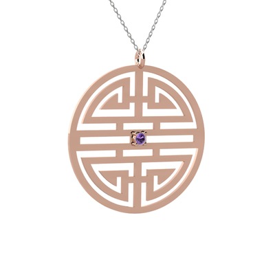 Ametist 18 ayar rose altın kolye (40 cm beyaz altın rolo zincir)