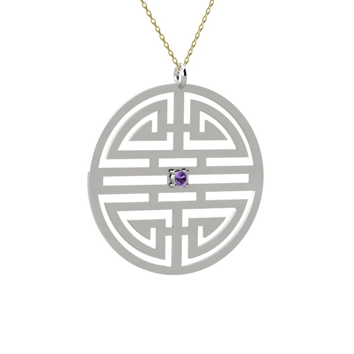 Ametist 8 ayar beyaz altın kolye (40 cm altın rolo zincir)