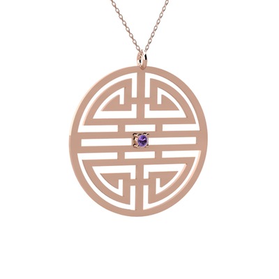 Ametist 8 ayar rose altın kolye (40 cm gümüş rolo zincir)