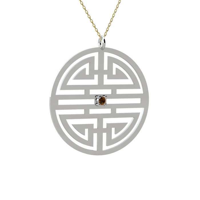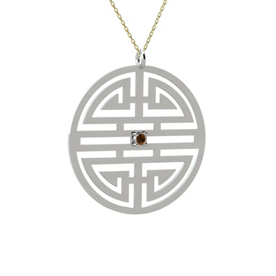 Dumanlı kuvars 18 ayar beyaz altın kolye (40 cm altın rolo zincir)