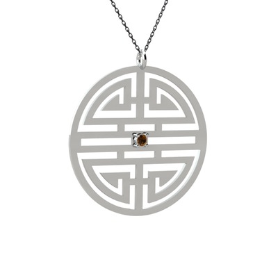 Dumanlı kuvars 8 ayar beyaz altın kolye (40 cm gümüş rolo zincir)