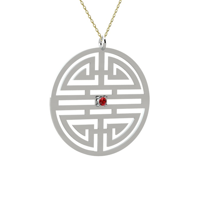 Garnet 14 ayar beyaz altın kolye (40 cm gümüş rolo zincir)