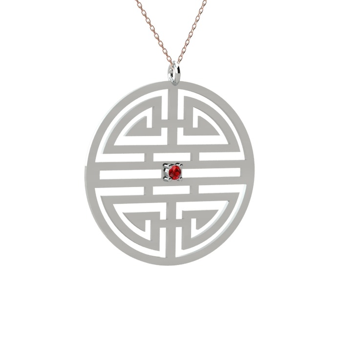 Garnet 8 ayar beyaz altın kolye (40 cm rose altın rolo zincir)