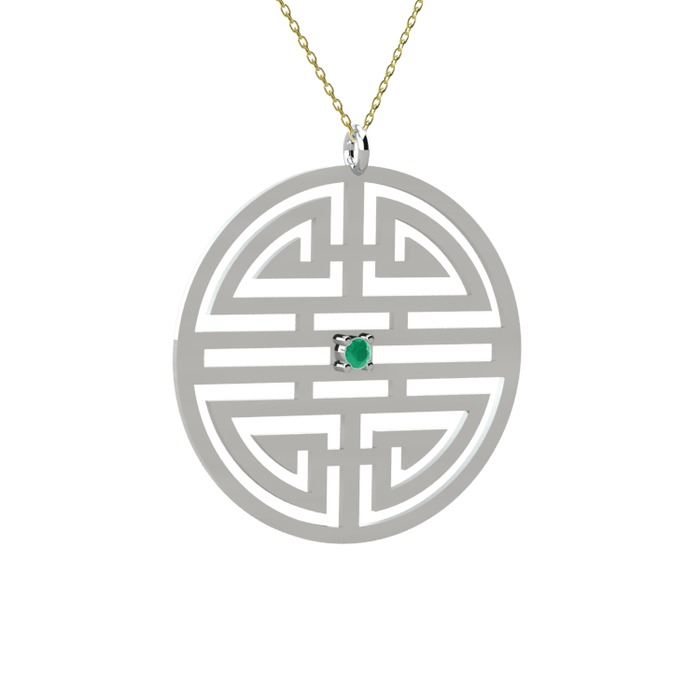 Kök zümrüt 8 ayar beyaz altın kolye (40 cm altın rolo zincir)
