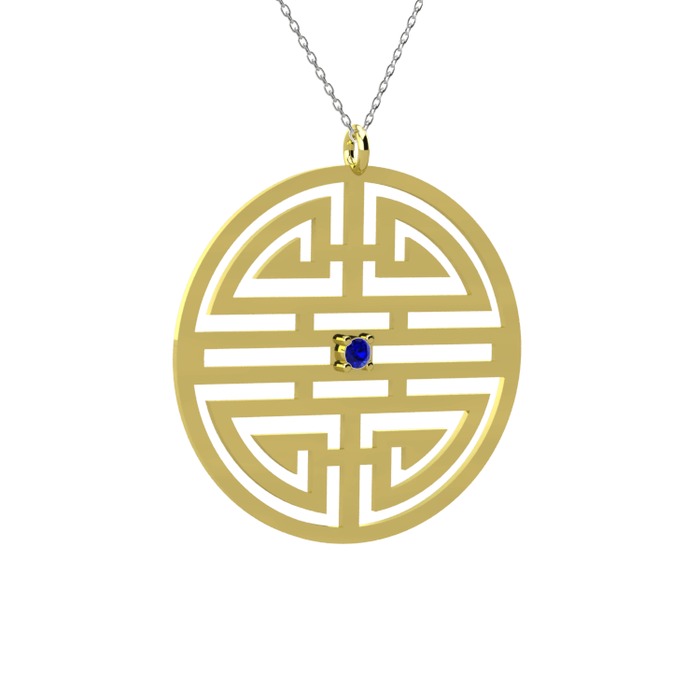 Lab safir 14 ayar altın kolye (40 cm gümüş rolo zincir)