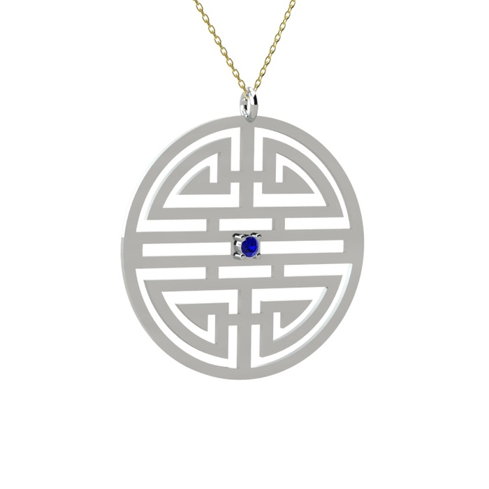 Lab safir 8 ayar beyaz altın kolye (40 cm gümüş rolo zincir)