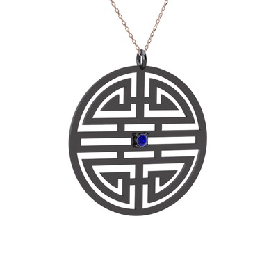 Lab safir 925 ayar siyah rodyum kaplama gümüş kolye (40 cm rose altın rolo zincir)