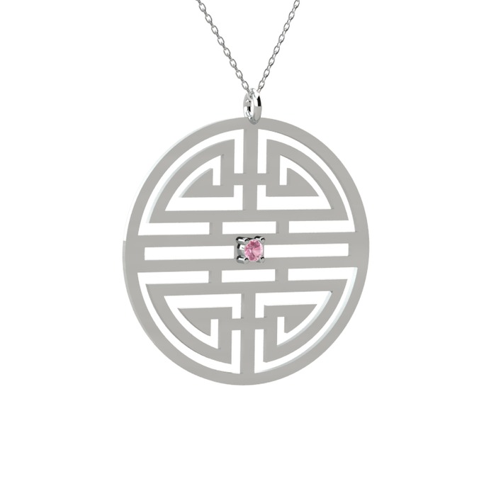 Pembe kuvars 14 ayar beyaz altın kolye (40 cm beyaz altın rolo zincir)