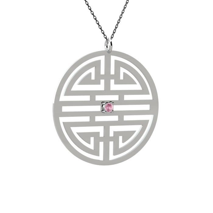 Pembe kuvars 14 ayar beyaz altın kolye (40 cm gümüş rolo zincir)
