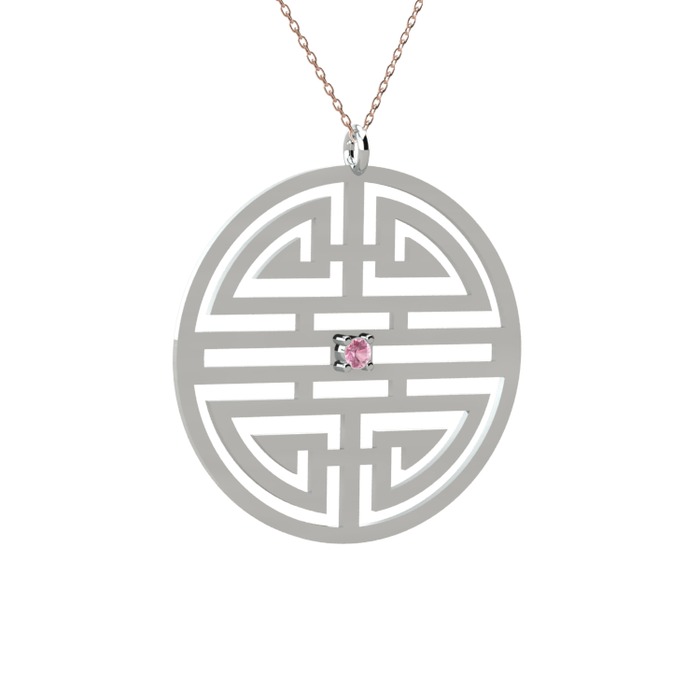 Pembe kuvars 18 ayar beyaz altın kolye (40 cm rose altın rolo zincir)