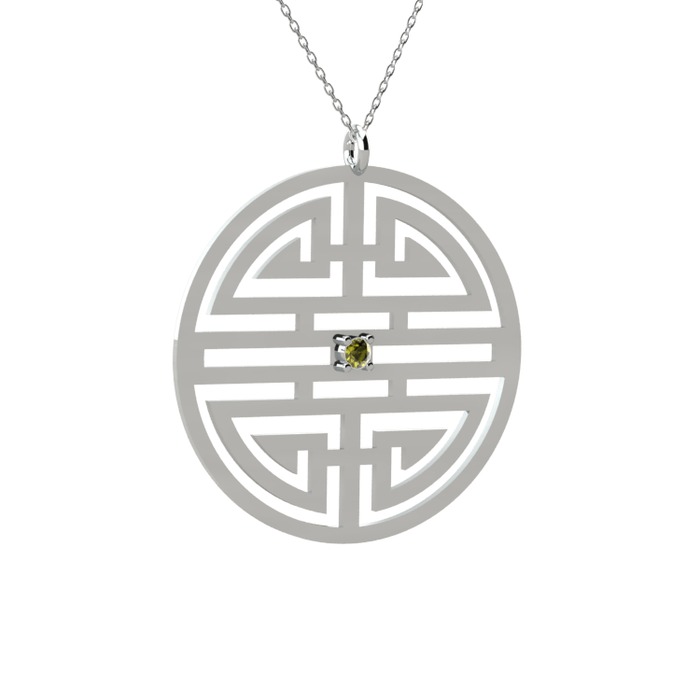 Peridot 14 ayar beyaz altın kolye (40 cm beyaz altın rolo zincir)