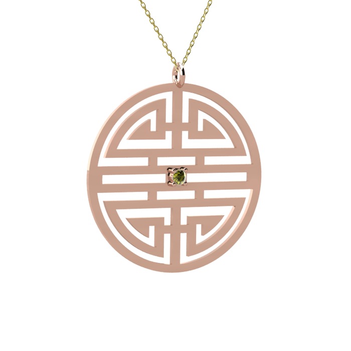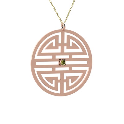 Peridot 14 ayar rose altın kolye (40 cm altın rolo zincir)