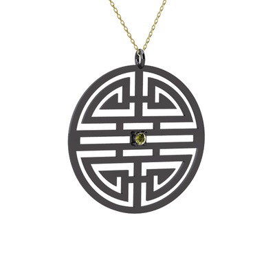 Peridot 925 ayar siyah rodyum kaplama gümüş kolye (40 cm altın rolo zincir)