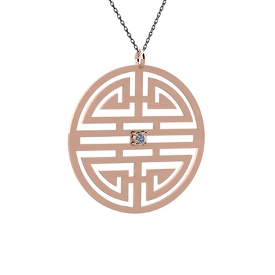 Pırlanta 18 ayar rose altın kolye (0.036 karat, 40 cm gümüş rolo zincir)