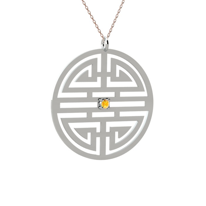 Sitrin 18 ayar beyaz altın kolye (40 cm rose altın rolo zincir)