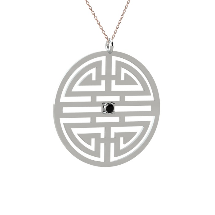 Siyah zirkon 14 ayar beyaz altın kolye (40 cm rose altın rolo zincir)