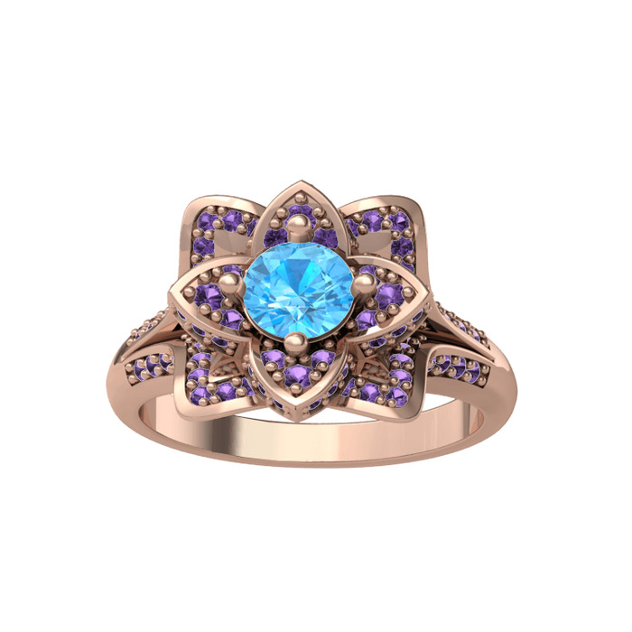 Akuamarin ve ametist 925 ayar rose altın kaplama gümüş yüzük