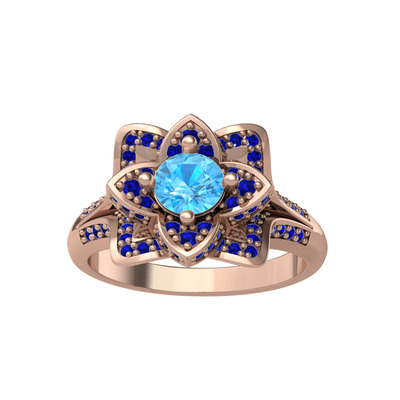 Akuamarin ve lab safir 18 ayar rose altın yüzük