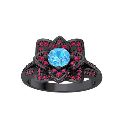 Akuamarin ve rodolit garnet 925 ayar siyah rodyum kaplama gümüş yüzük