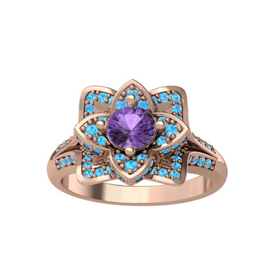 Ametist ve akuamarin 14 ayar rose altın yüzük
