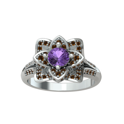Ametist ve dumanlı kuvars 8 ayar beyaz altın yüzük
